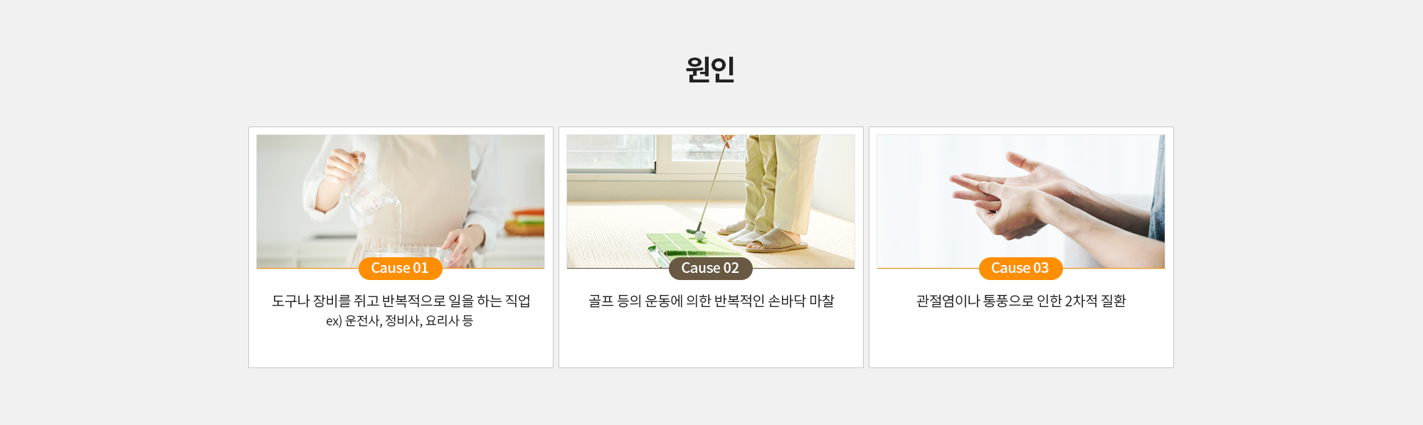 손목터널증후군, 테니스골프엘보, 방아쇠수지증후군을 치료합니다.