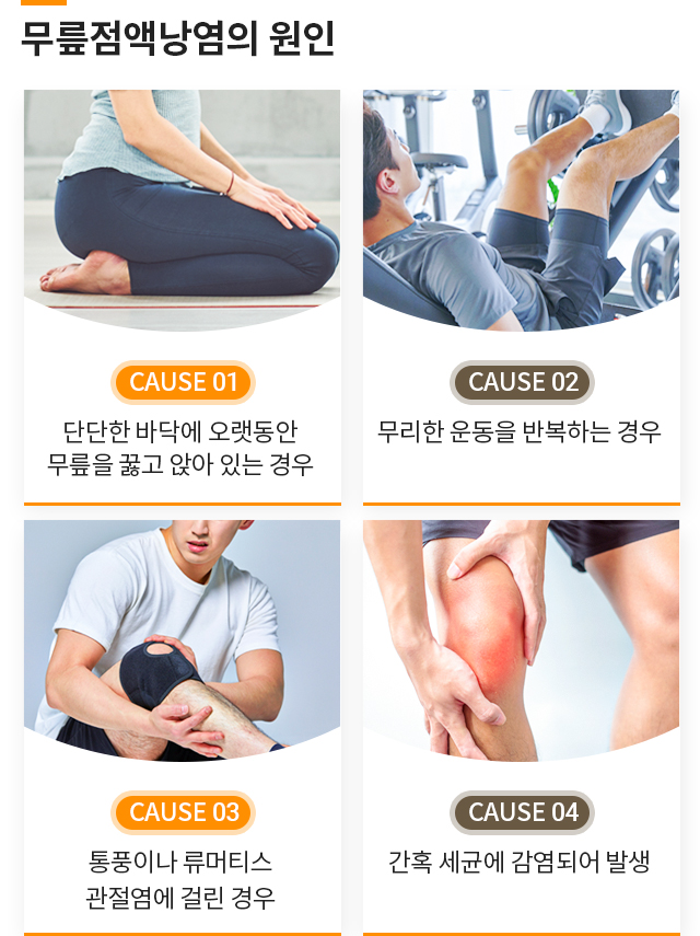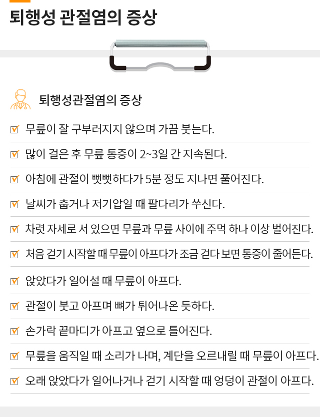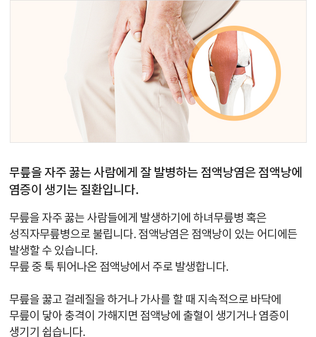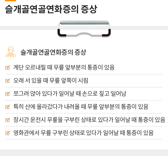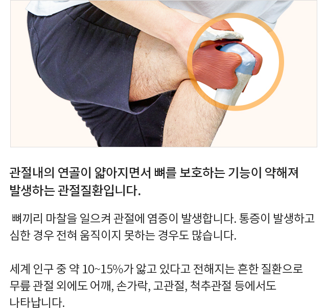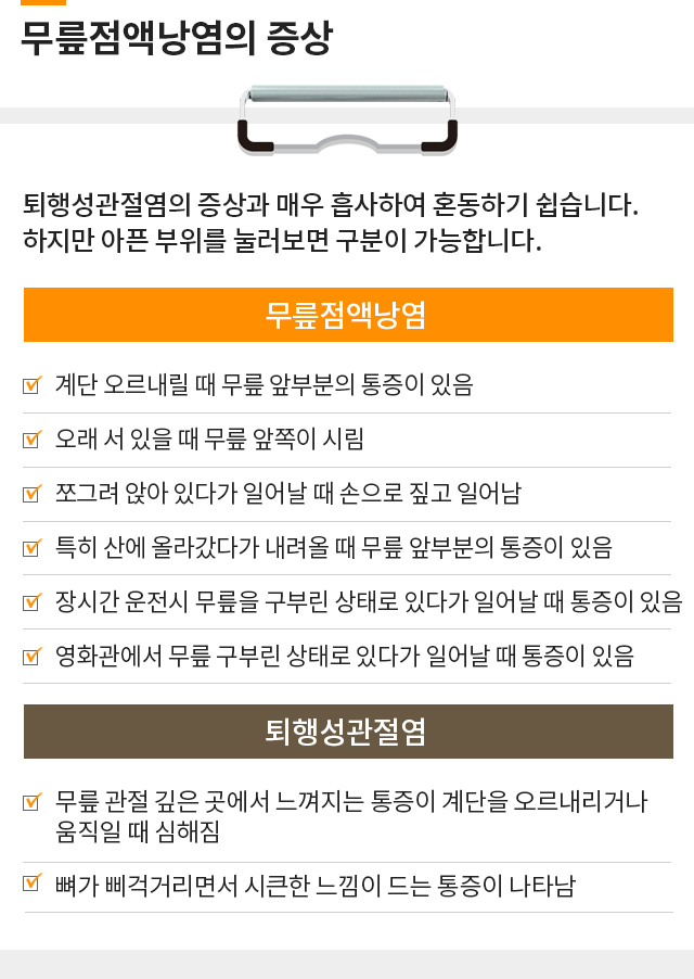 퇴행성관절염, 반월상연골손상, 슬개골연골연화증,무릎점액낭염까지!